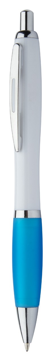 Pix din plastic, cu corp alb, inserție colorată și părți cromate strălucitoare. Mină albastră.