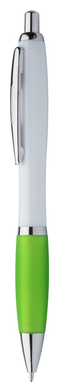 Pix din plastic, cu corp alb, inserție colorată și părți cromate strălucitoare. Mină albastră.