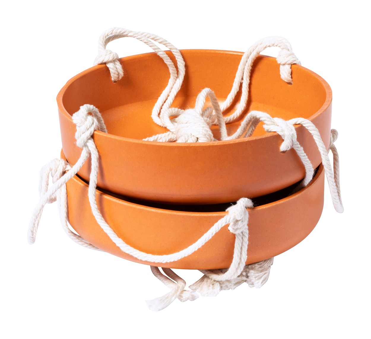 Hrănitoare pentru păsări, din plastic din fibră de bambus, cu 2 boluri și cordon de agățat, din bumbac.