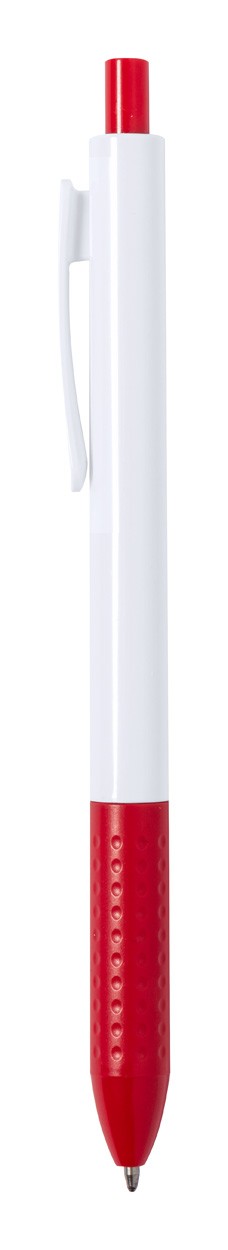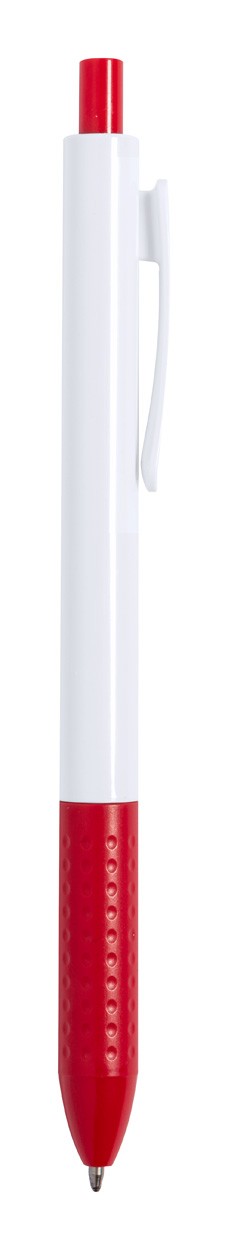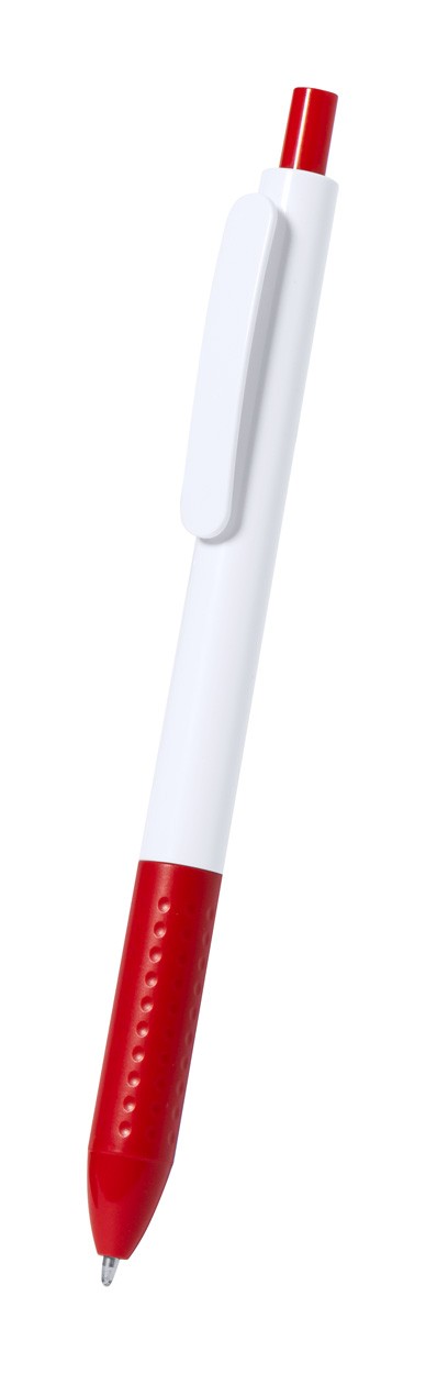 Pix din plastic ABS, cu corp alb și detalii colorate. Cu mină albastră.
