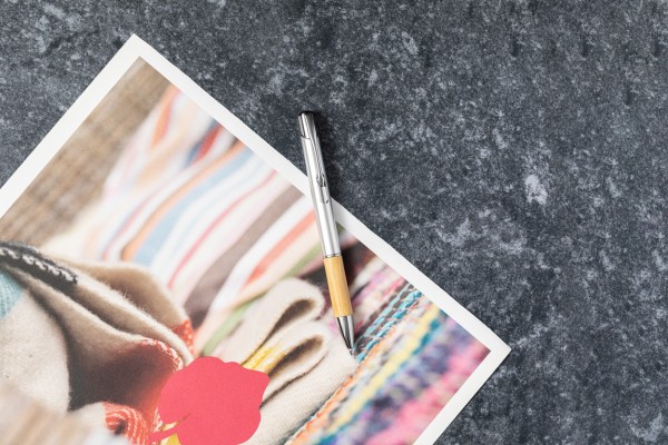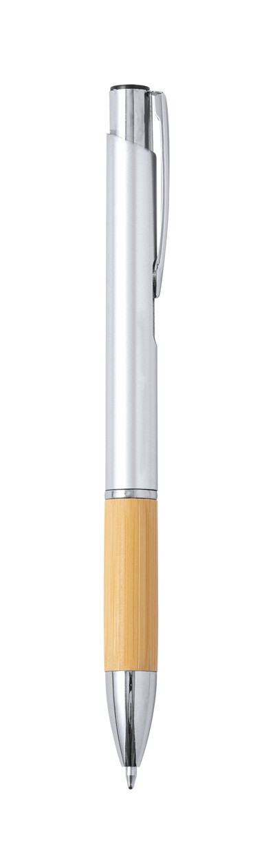 Pix din plastic ABS cu mâner din bambus și părți cromate. Cu mină albastră.