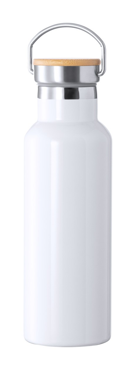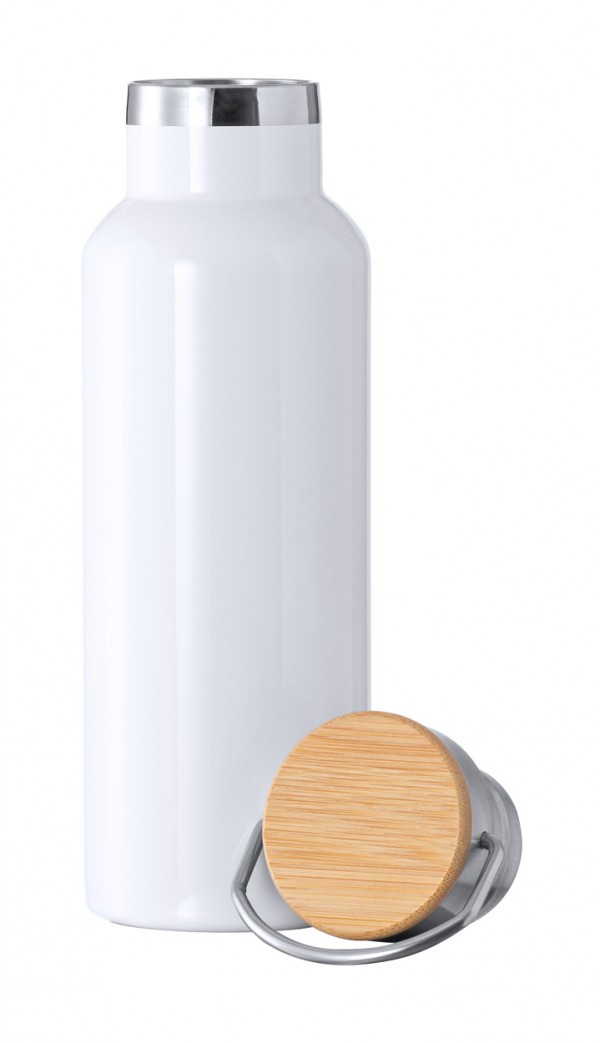 Termos din oțel inoxidabil cu pereți dubli, pentru imprimare prin sublimare, cu capac de transport din bambus. 500 ml.