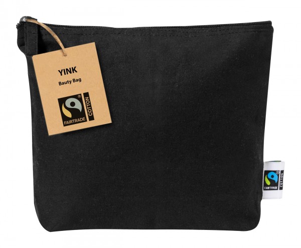Geantă cosmetică din bumbac Fairtrade, cu fermoar. 100% bumbac Fairtrade, cu etichetă distinctă Fairtrade.