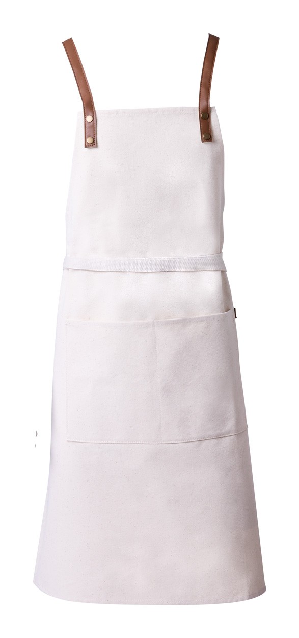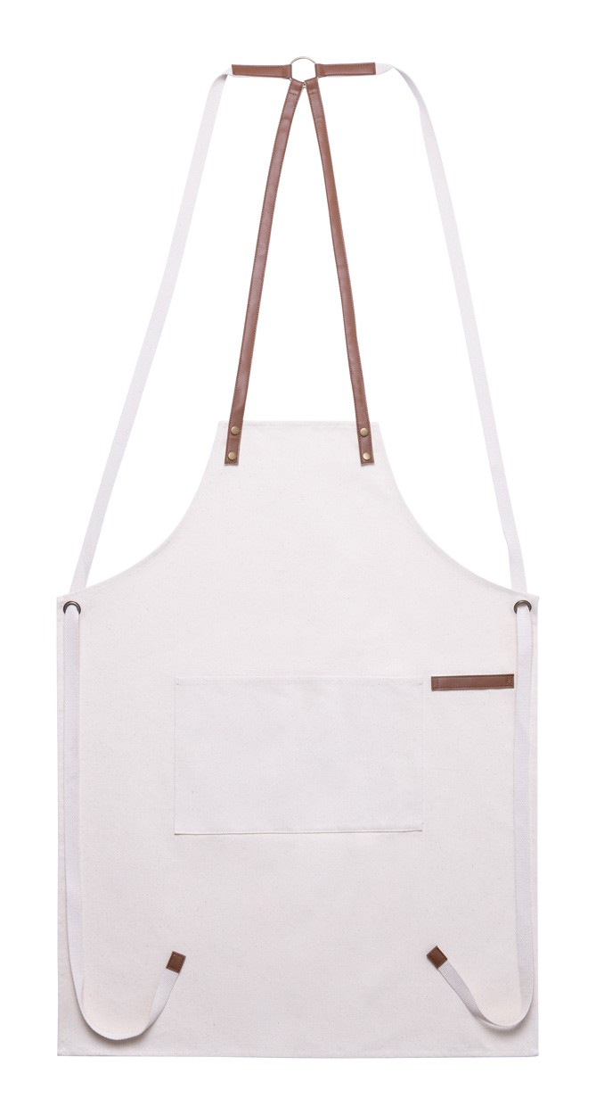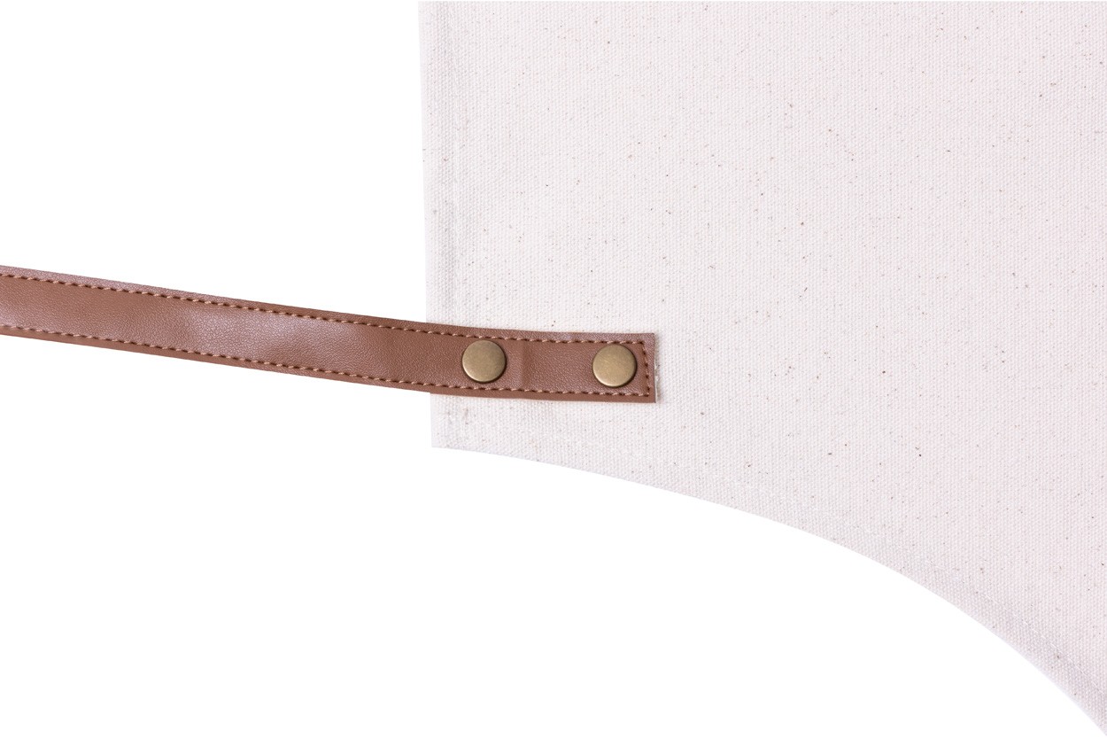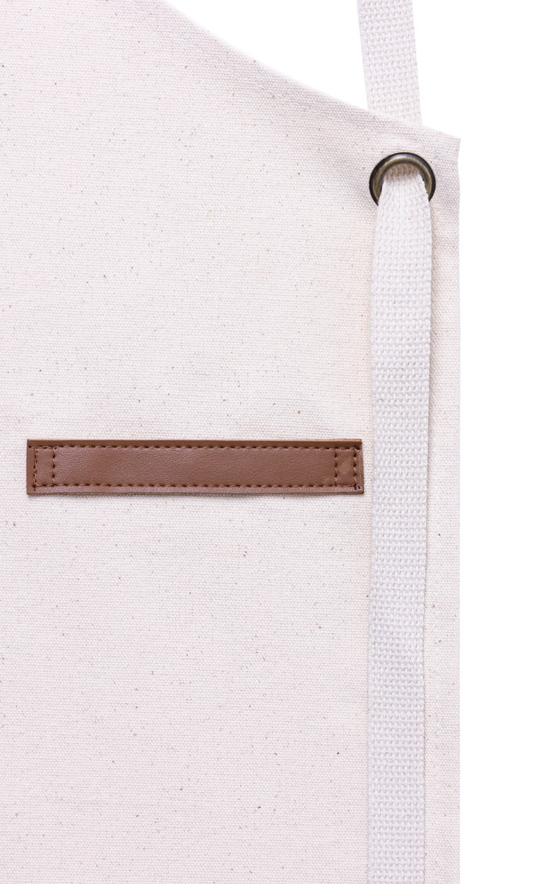 Șorț din pânză de bumbac 100%, cu 2 buzunare frontale, accente din piele PU și bretele reglabile. 340 g/m².