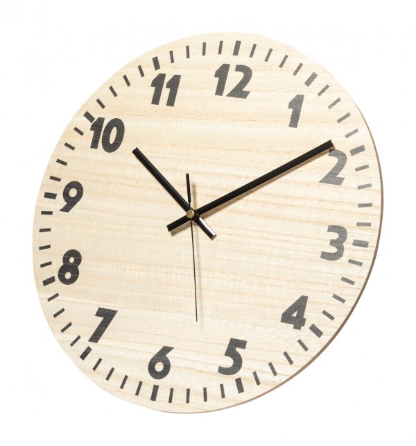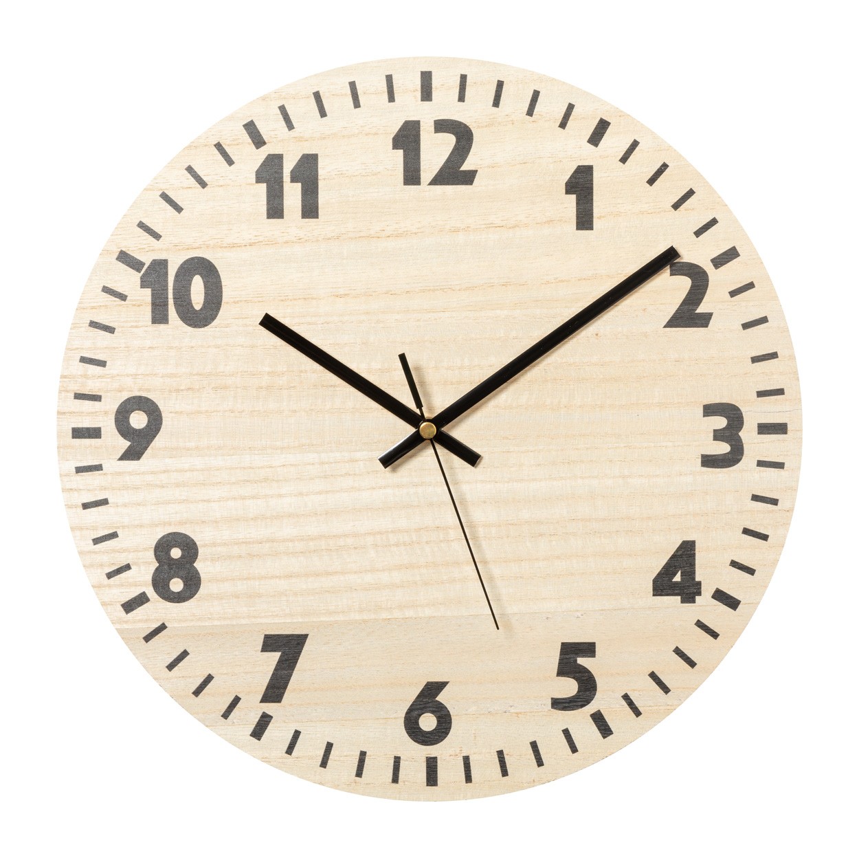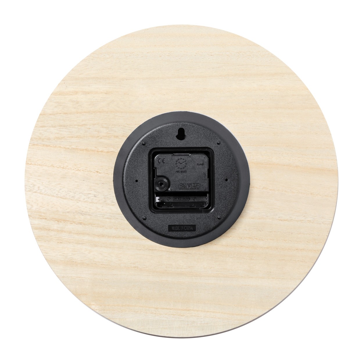 Ceas de perete din lemn MDF. Funcționează cu 1 baterie AA, se livrează fără baterii.