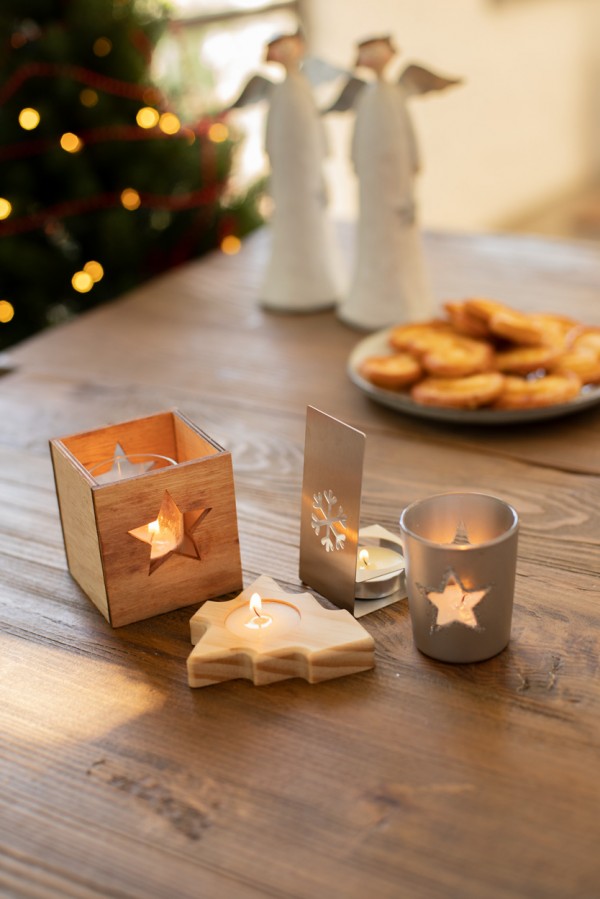 Lumânre cu design de Crăciun. În cutie transpatentă din plastic.
