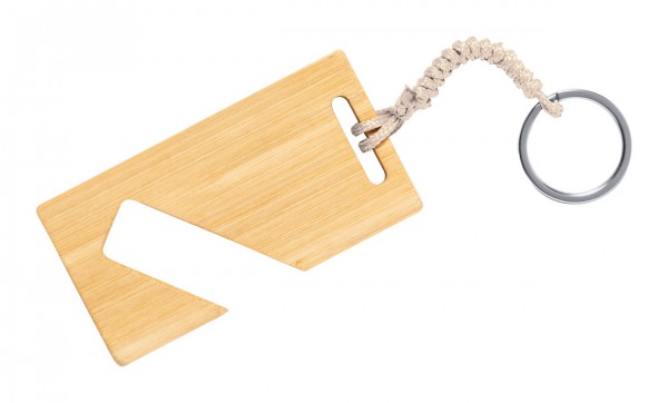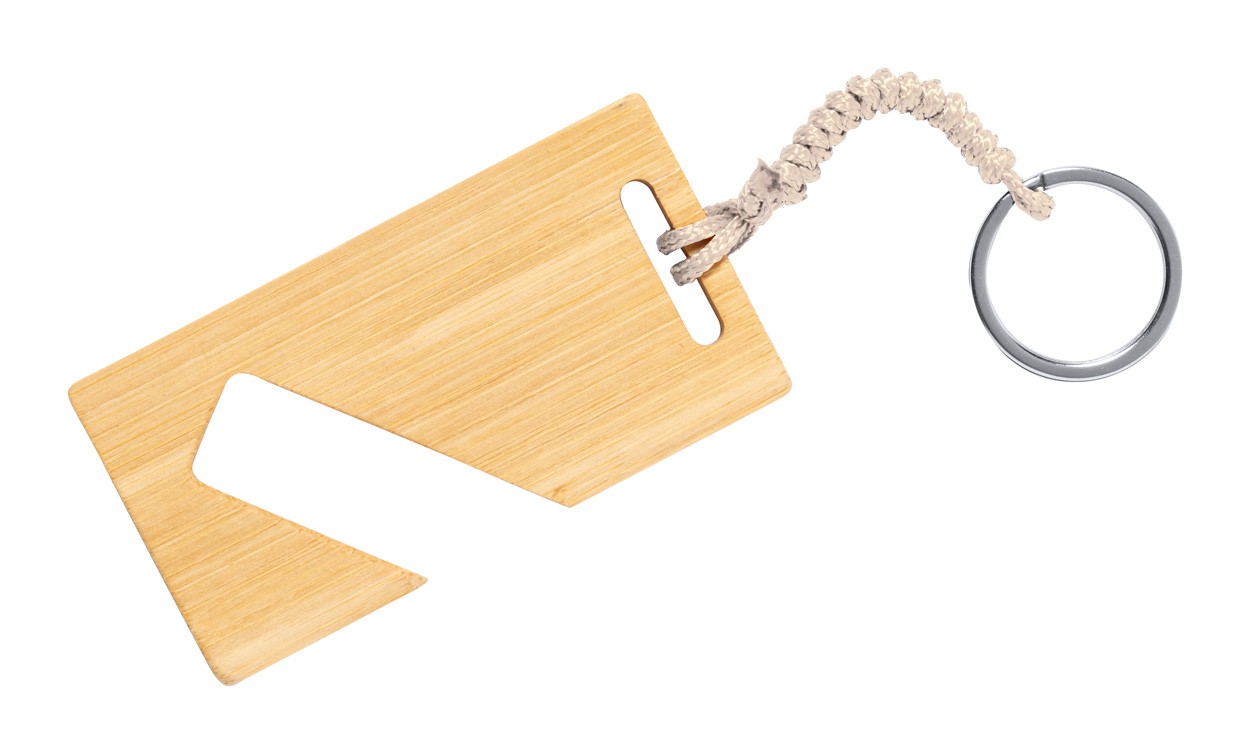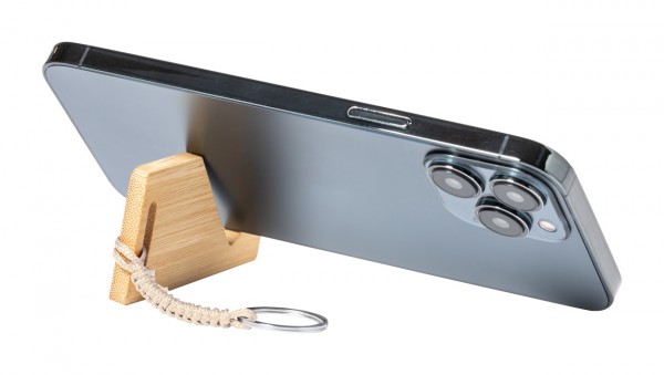 Breloc pentru telefon suport mobil, din bambus, cu inel metalic atașat șir.