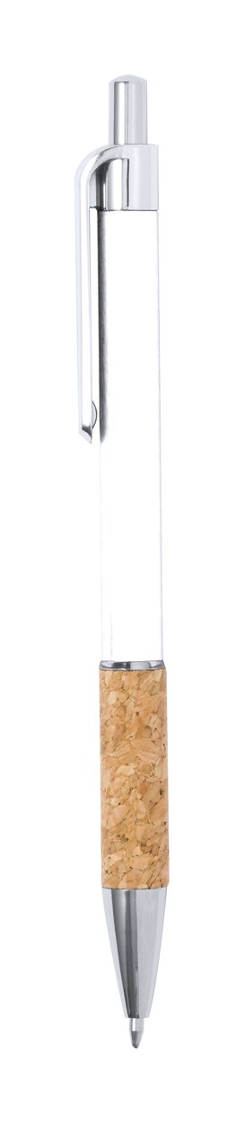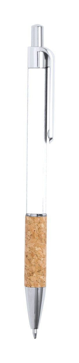 Pix din aluminiu, cu corp din plută naturală, detalii metalice și mină albastră.