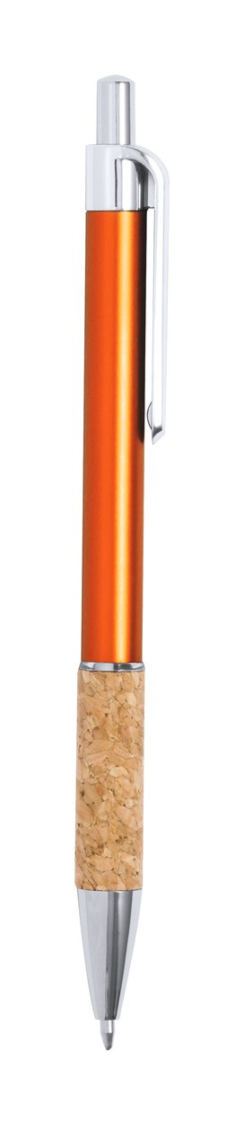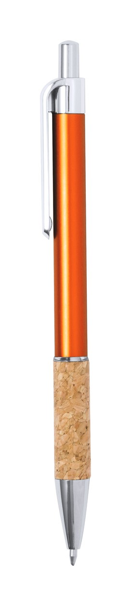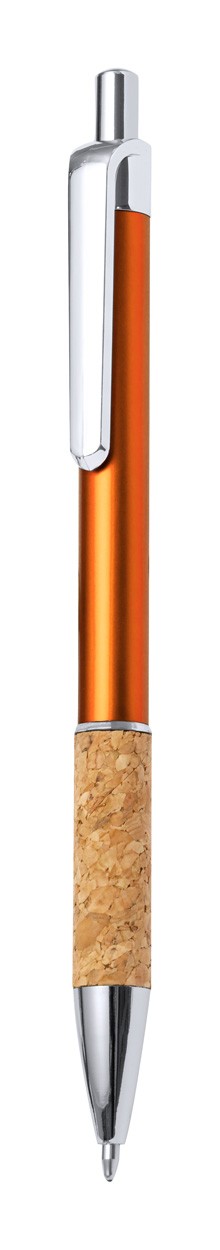 Pix din aluminiu, cu corp din plută naturală, detalii metalice și mină albastră.