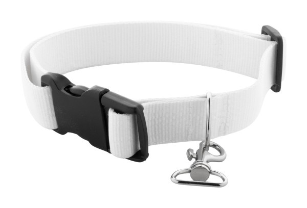Zgardă pentru câine, din poliester, realizată la comandă, cu carabină din plastic și inel metalic. Cu grafică imprimată prin sublimare pe ambele fețe. MOQ: 50 buc.