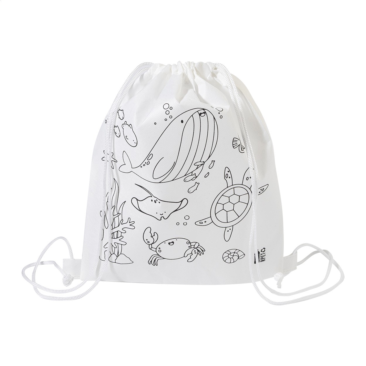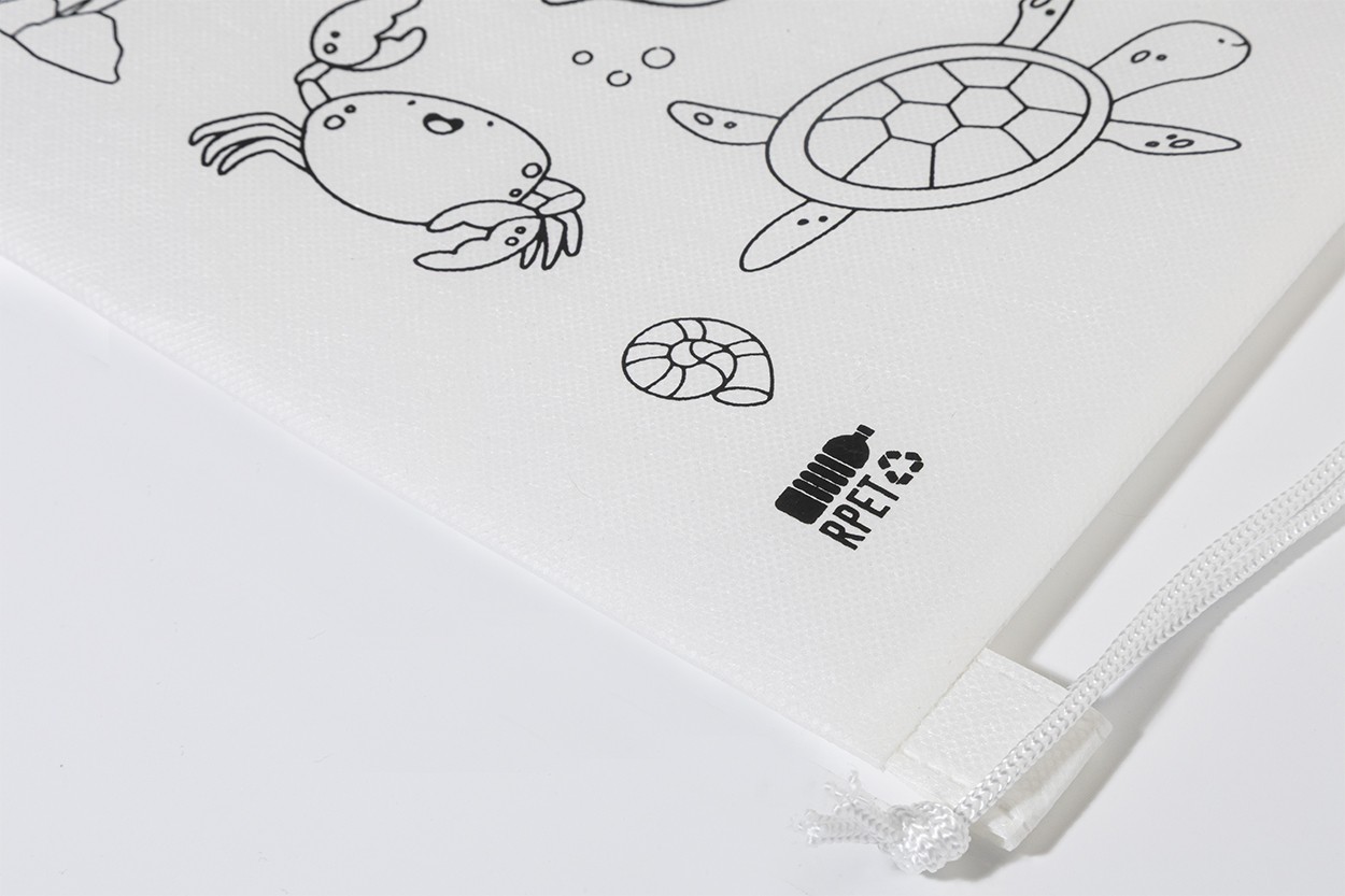 Rucsac cu șnur, de colorat, pentru copii, din material nețesut RPET, cu 5 creioane colorate.