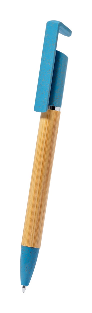 Pix din bambus, cu piese din plastic din paie de grâu, suport mobil și mină albastră.