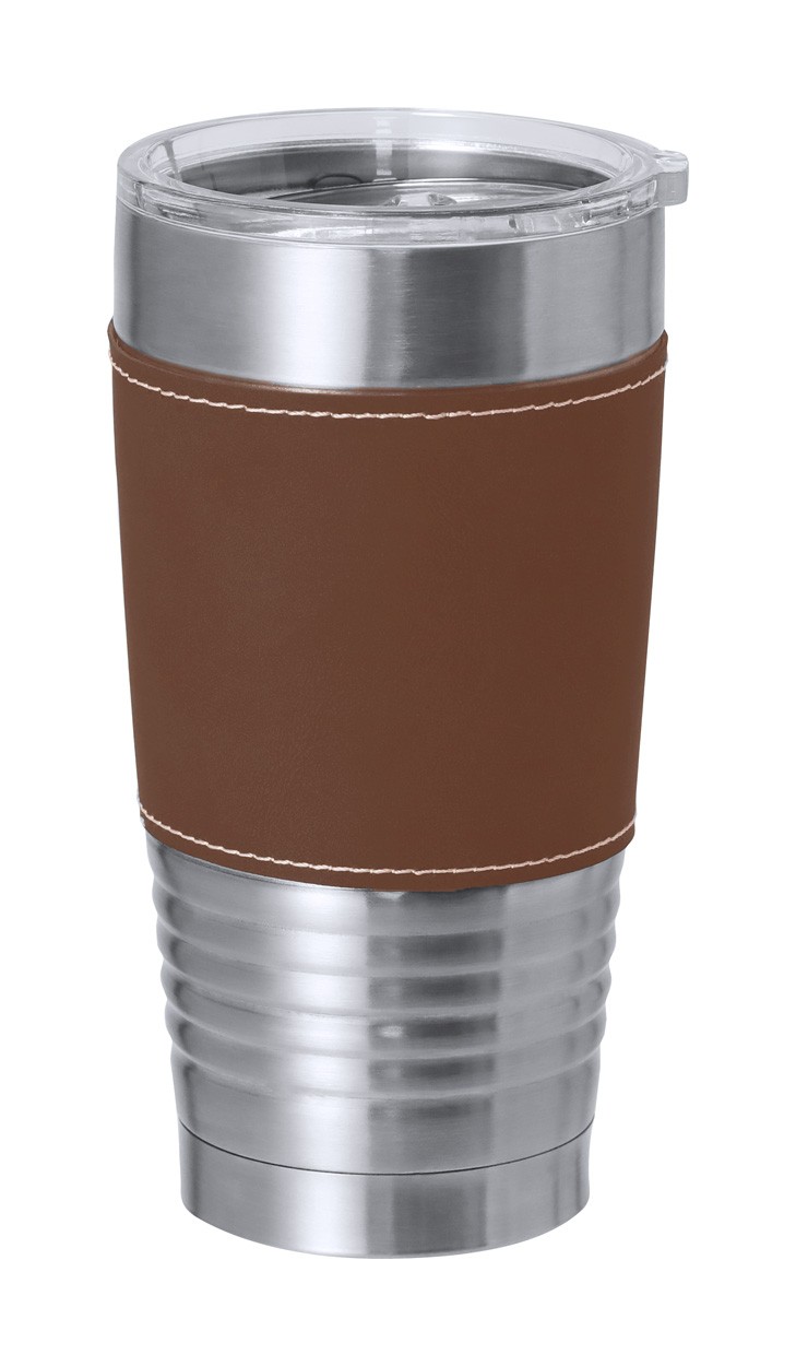 Cană termoizolată din oțel inoxidabil, cu perete dublu, cu mâner din piele PU și capac pentru băut, 420 ml. Izolația menține băuturile calde timp de 3 ore și reci timp de 6 ore.