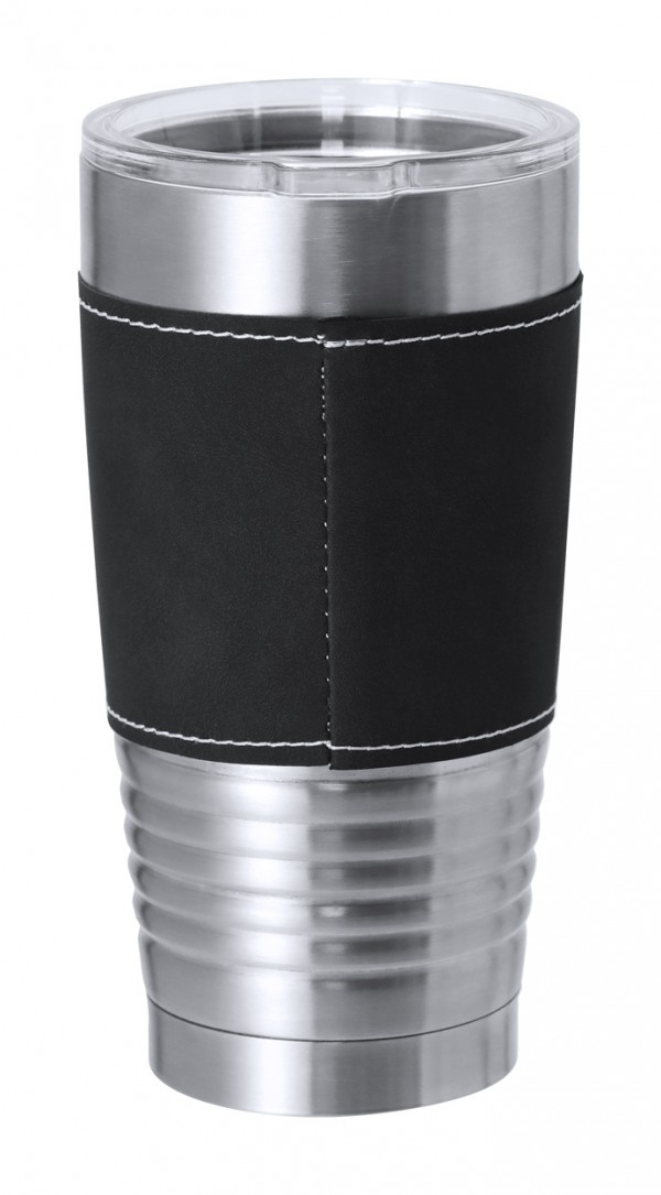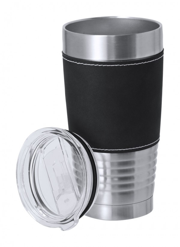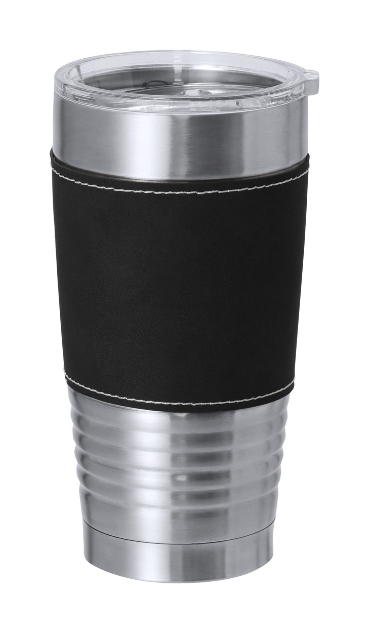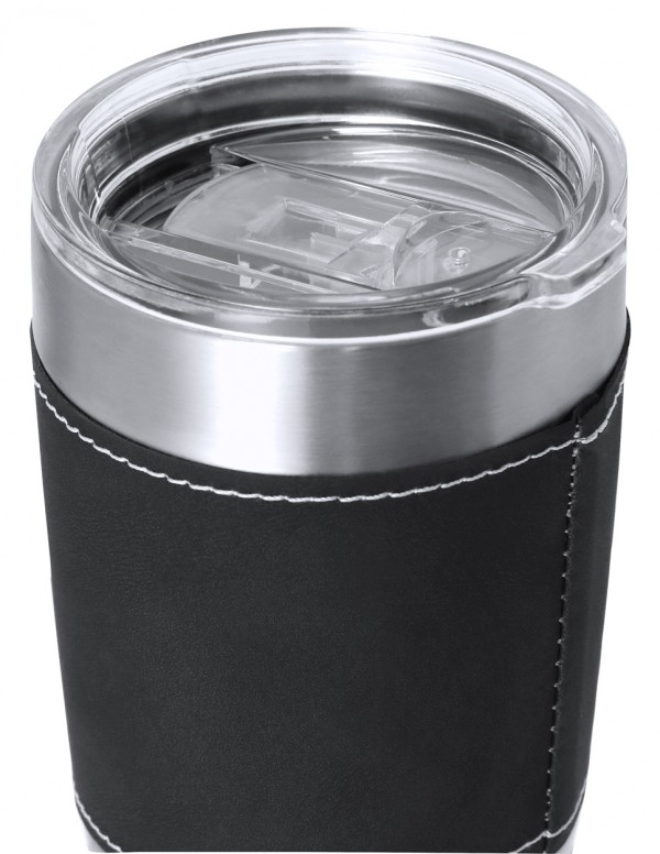Cană termoizolată din oțel inoxidabil, cu perete dublu, cu mâner din piele PU și capac pentru băut, 420 ml. Izolația menține băuturile calde timp de 3 ore și reci timp de 6 ore.