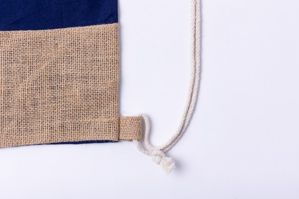 Two-tone drawstring bag in cotton (120 g/m²) and jute.